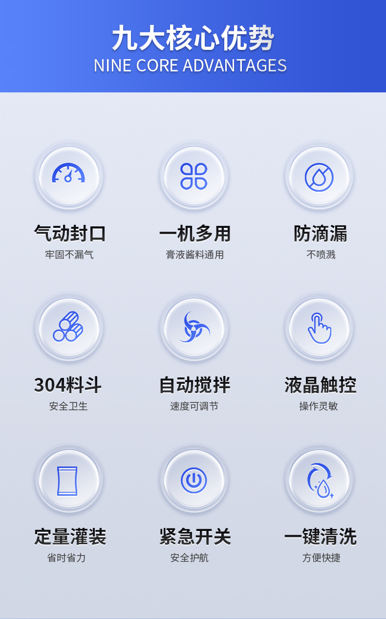 - 番茄酱、蜂蜜、沙拉酱、花生酱、洗衣液、沐浴液、酱油醋、等各种带流动性的液体膏体