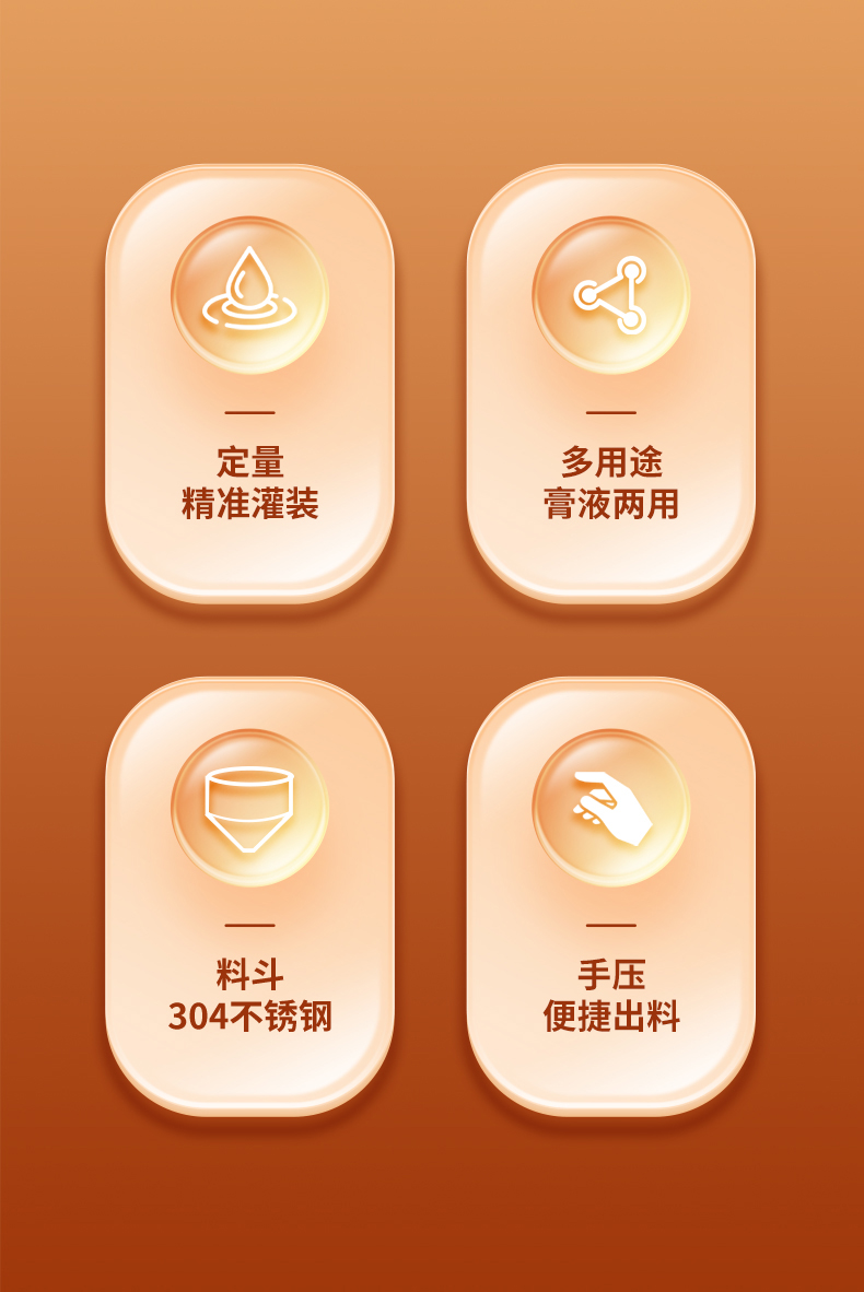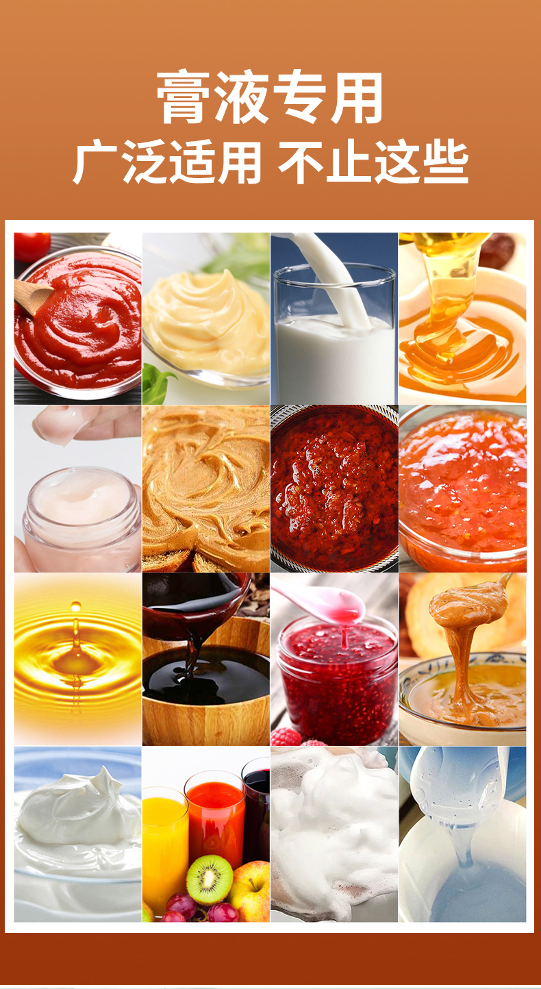 番茄酱、蜂蜜、沙拉酱、花生酱、洗衣液、沐浴液、酱油醋、等各种带流动性的液体膏体