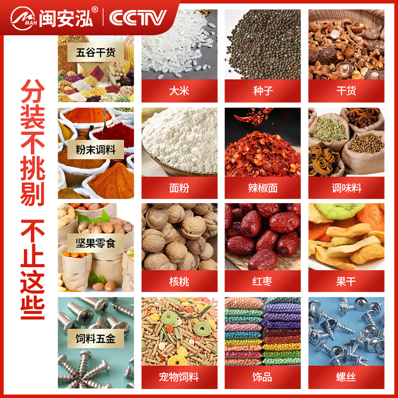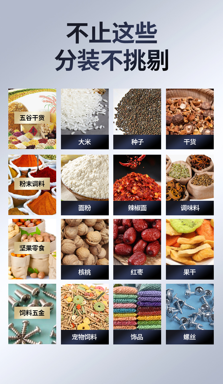 五谷、干货、茶叶、塑料、化肥、粉末、调料、药材、五金、饰品、零食、坚果等各类产品