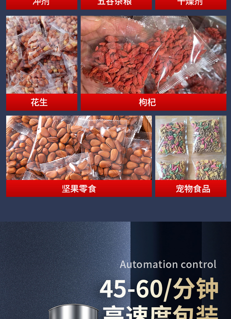 五谷杂粮,干燥剂,茶叶,饲料,坚果,零食,枸杞,药品,等各类颗粒状产品
