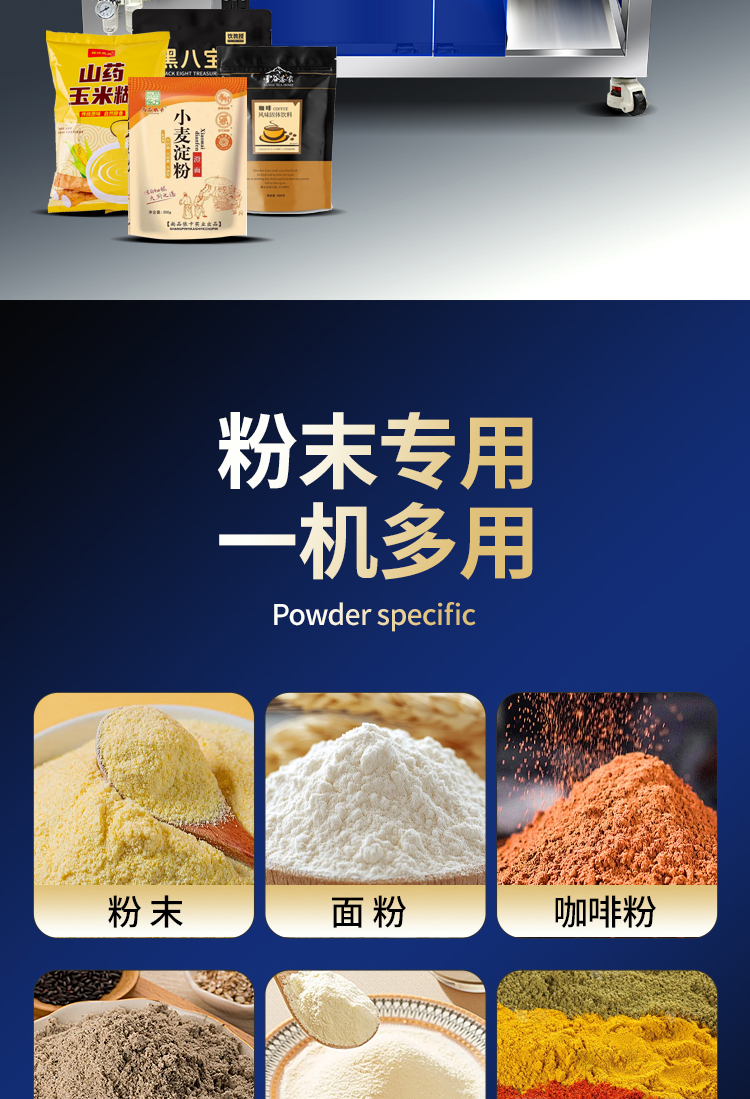 粉末、面粉、淀粉、饮料粉、益生菌粉、奶粉、咖啡粉、豆浆粉、玉米粉等各种粉末状产品