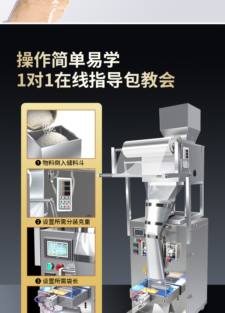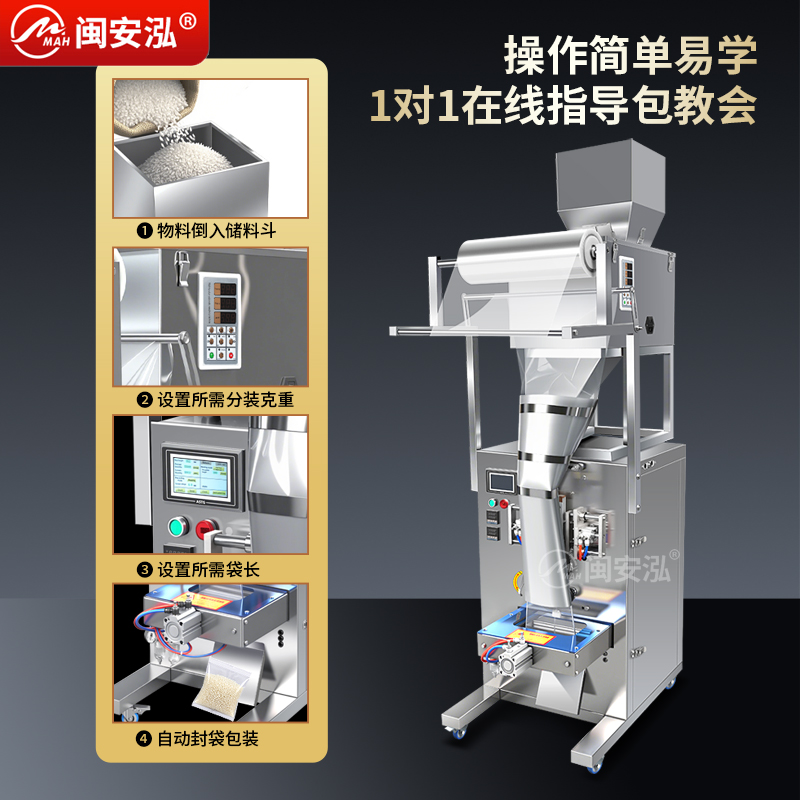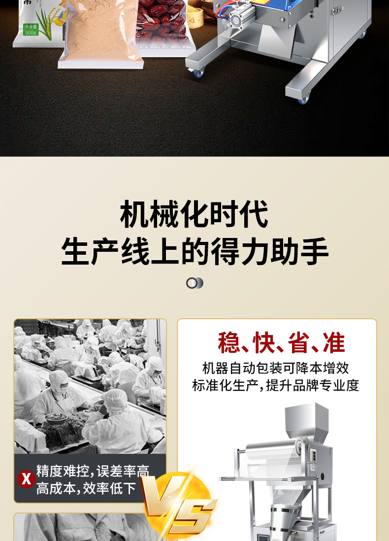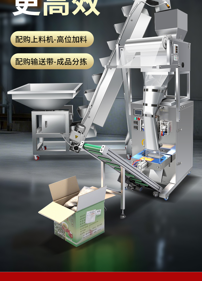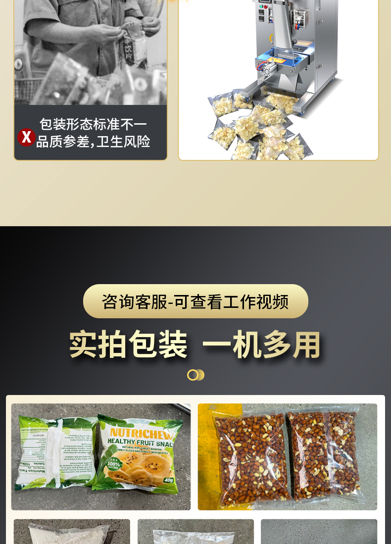 - 五谷、种子、粉末、坚果、红枣、薯片、膨化零食、冲剂、饲料、化肥、瓜子、珠子等各类小颗粒和粉末产品