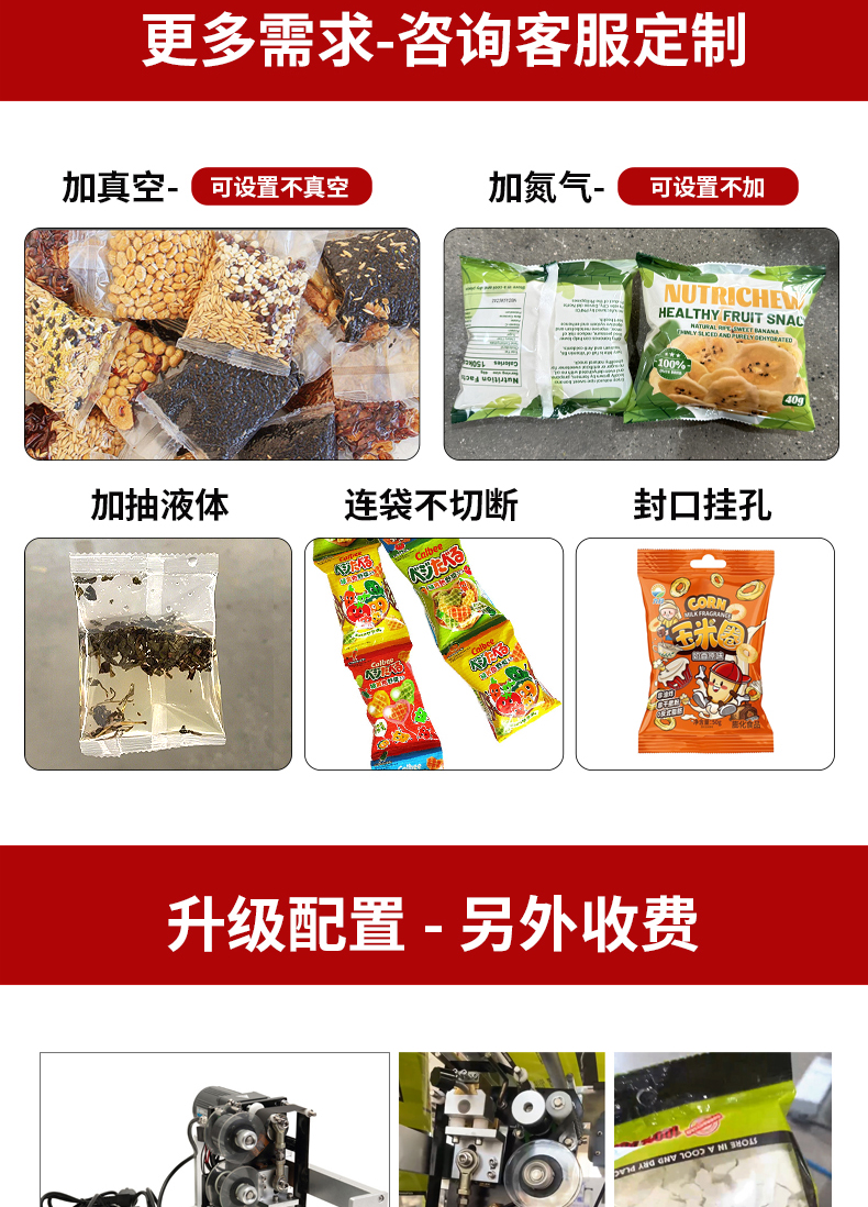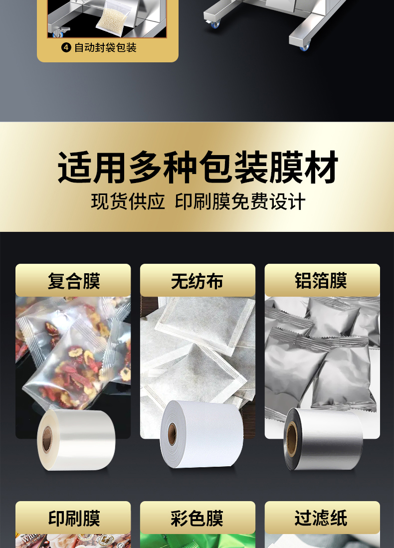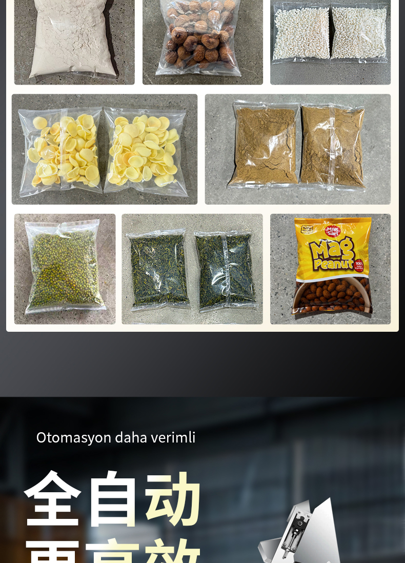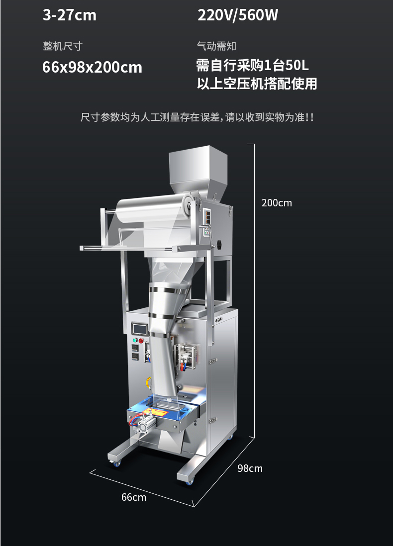 - 五谷、种子、粉末、坚果、红枣、薯片、膨化零食、冲剂、饲料、化肥、瓜子、珠子等各类小颗粒和粉末产品
