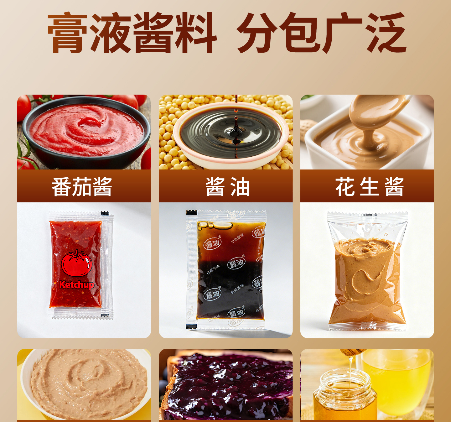 番茄酱、沙拉酱、花生酱、酱油醋、蚝油、果酱、酸奶、蜂蜜等带流动性膏体